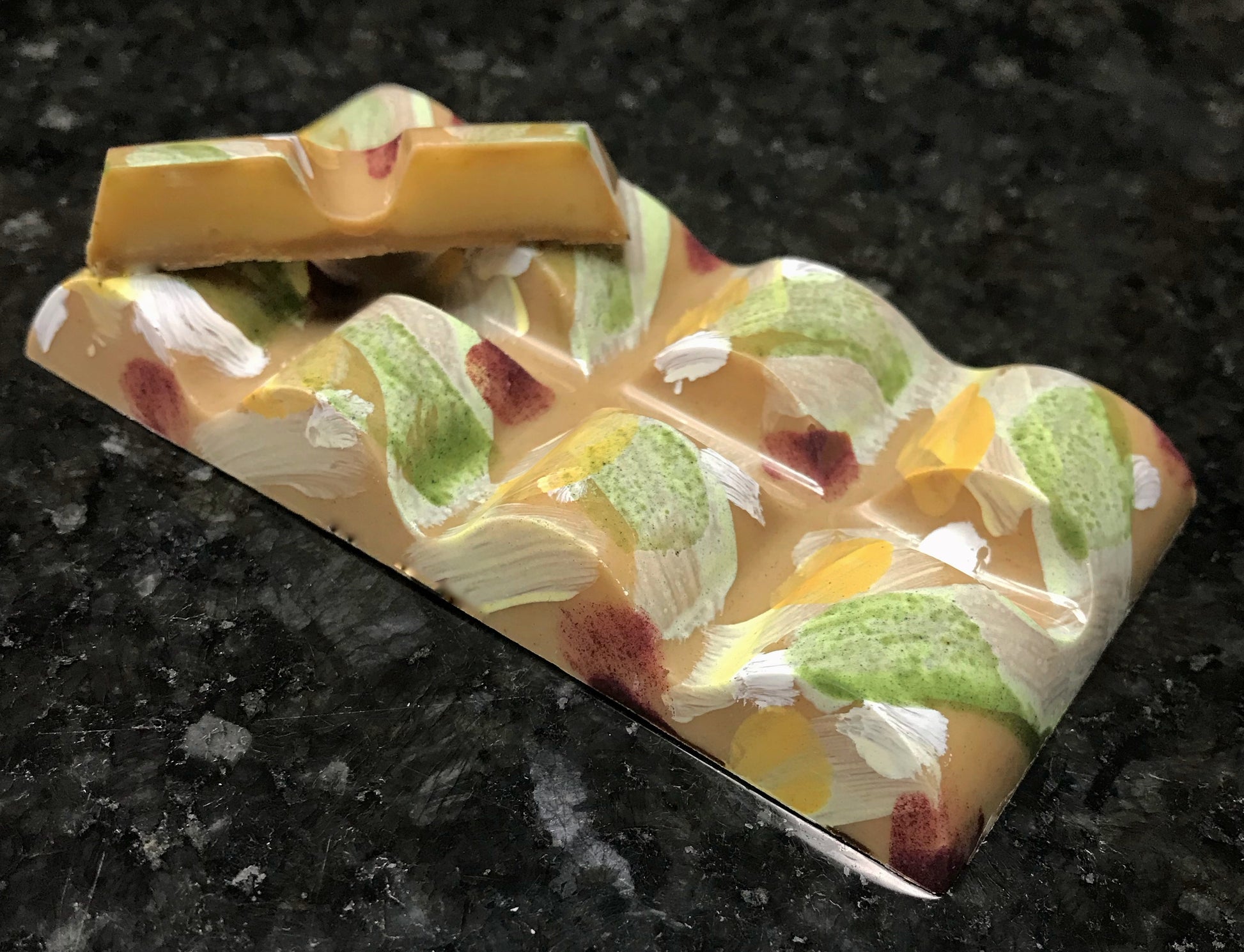 A light & fruity bar based on a classic Mai Tai! Valrhona's Almond Couverture forms a delicate almond shell, filled with a lime and rum white chocolate ganache, accented with a touch of orange flower water. Celebrate Tiki Tuesday everday!