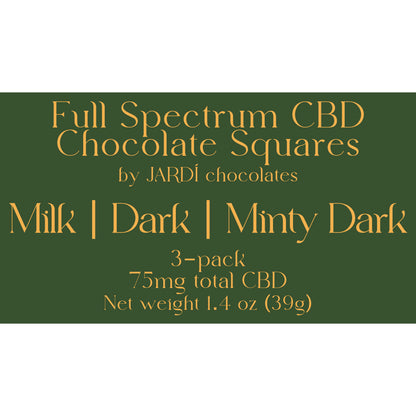 Each square is made of our same high-quality, sustainably sourced chocolate and 25mg of full-spectrum hemp distillate from Second Century Agriculture (located in Ocilla, GA). We've sent each batch to a 3rd party testing facility to ensure it's potency and safety, which you can see by simply scanning the QR code on the back of each package.