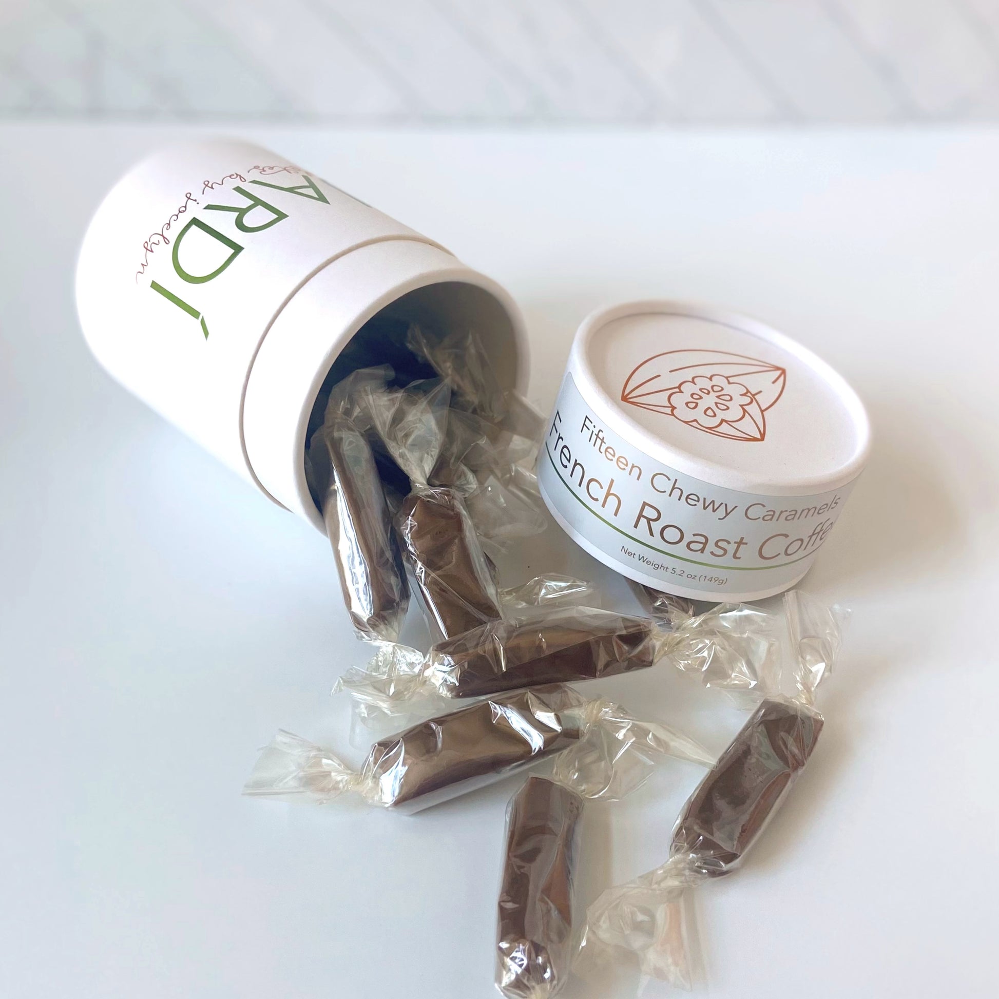 Just like a chewy version of your favorite coffee ice cream (and a healthy dose of caffeine too!), this alteration of our salted vanilla caramels features a just-barely-there hint of bitterness followed by smooth roasted sweetness.